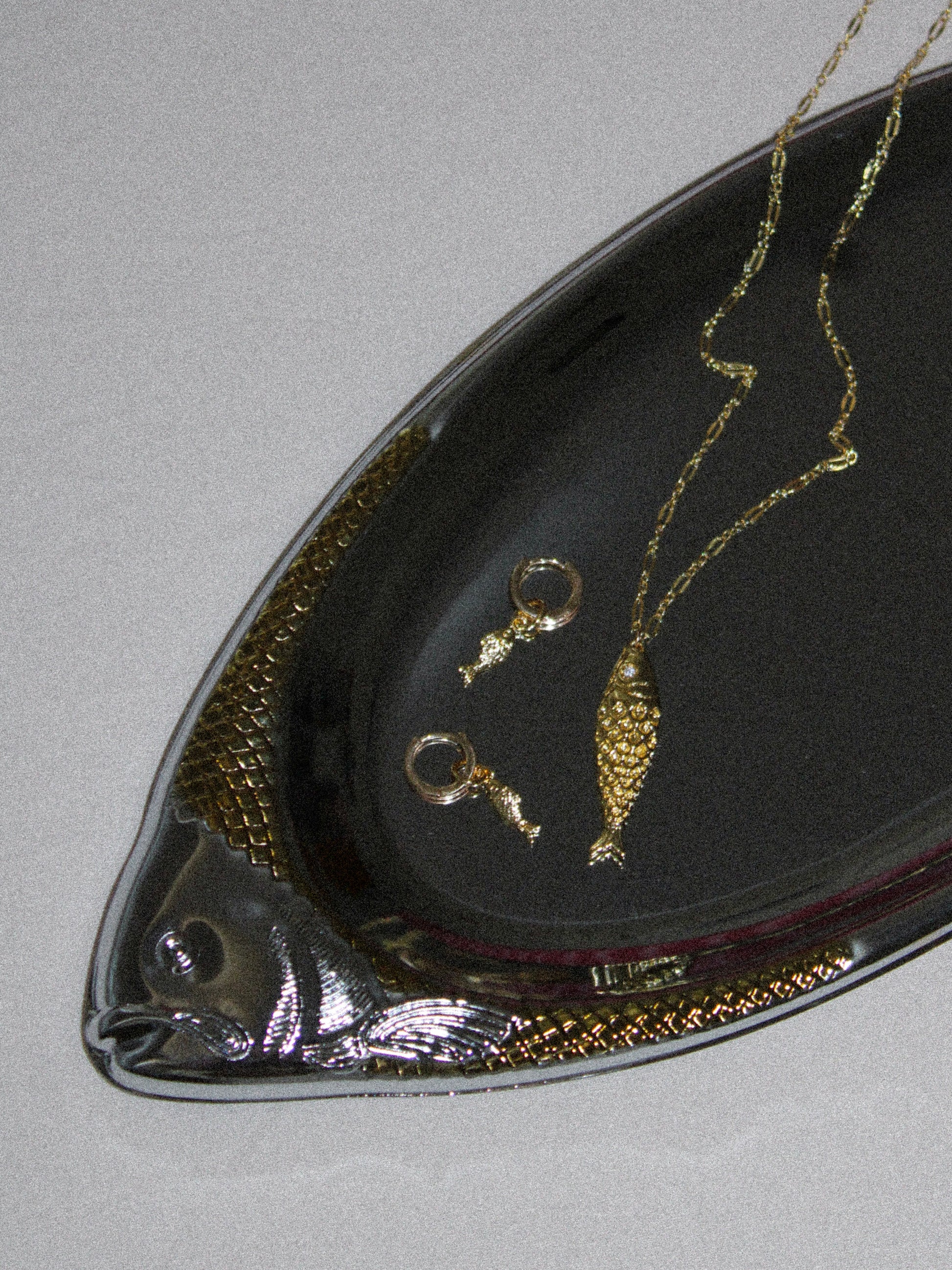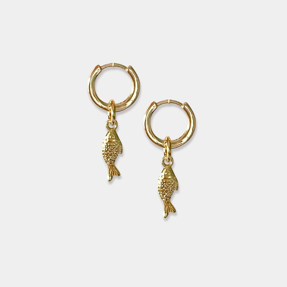 Inspired by the beloved mezé commonly served in Greek tavernes during the summer, our Barbooni hoops are a playful nod to summer with an elegant twist. They feature a 14k gold filled huggie hoop with the sweetest 14k gold plated fish pendant. Wear them on their own, as part of your stack, or even paired with our BARBOONI necklace.