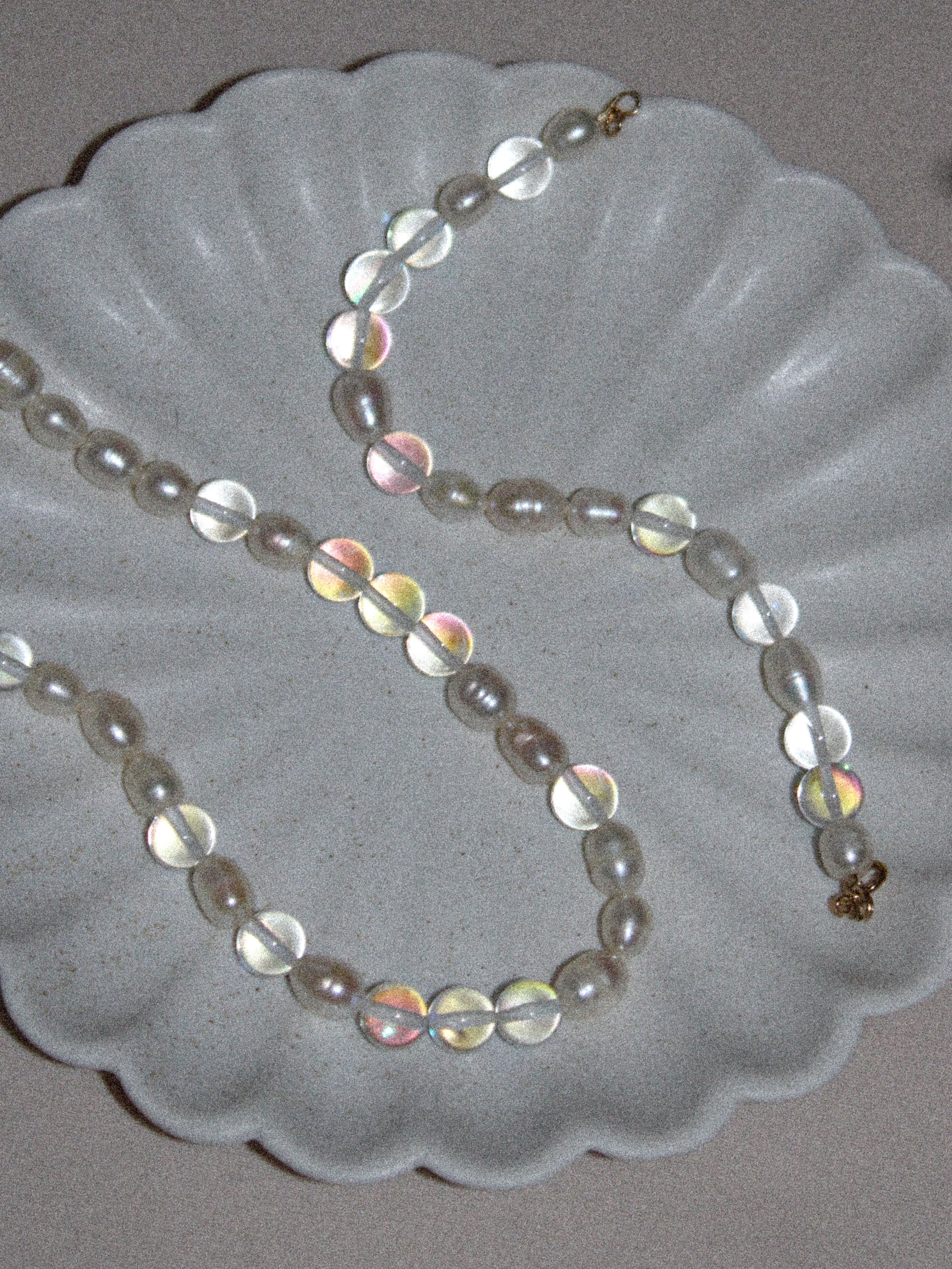 Our Mermaid Pearl Choker is a unique twist on the classic pearl necklace. In a unique incorporation of freshwater pearls and iridescent glass beads, this piece will add a whimsical touch to your necklace stack. This most versatile piece of jewellery can be dressed up or down to suit any occasion. No wonder pearls never go out of style!