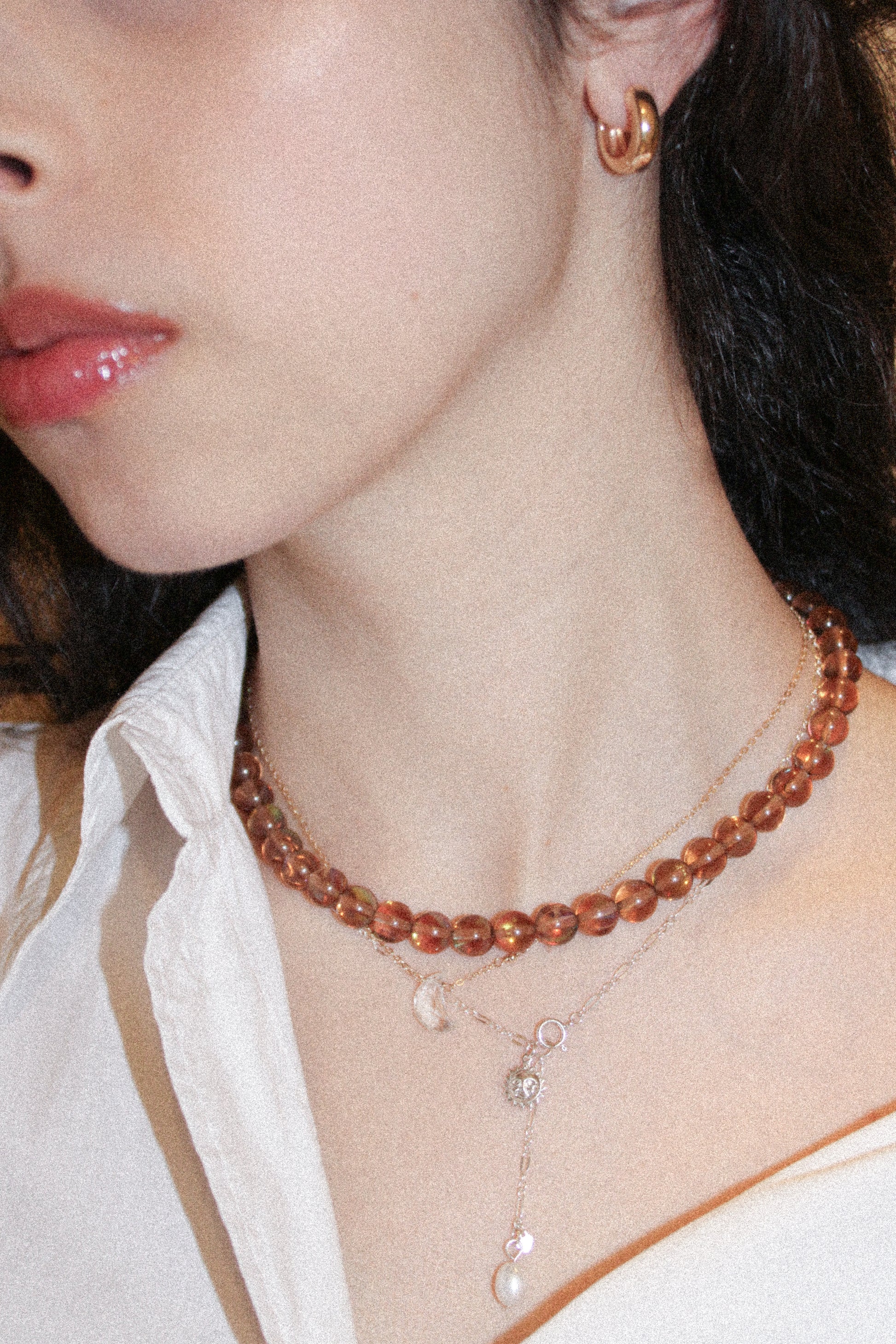 Our FEGÁRI necklace will capture your heart. Featuring a faceted clear quartz on the daintiest 14k Gold Filled chain, this truly unique necklace will become your new favourite every day piece.